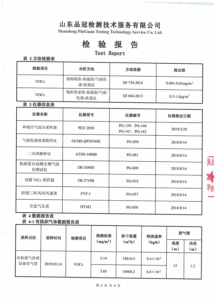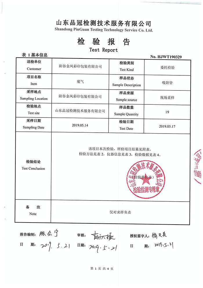 金凤包装厂 废气(vocs)监测报告
