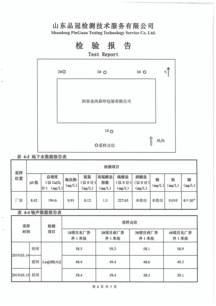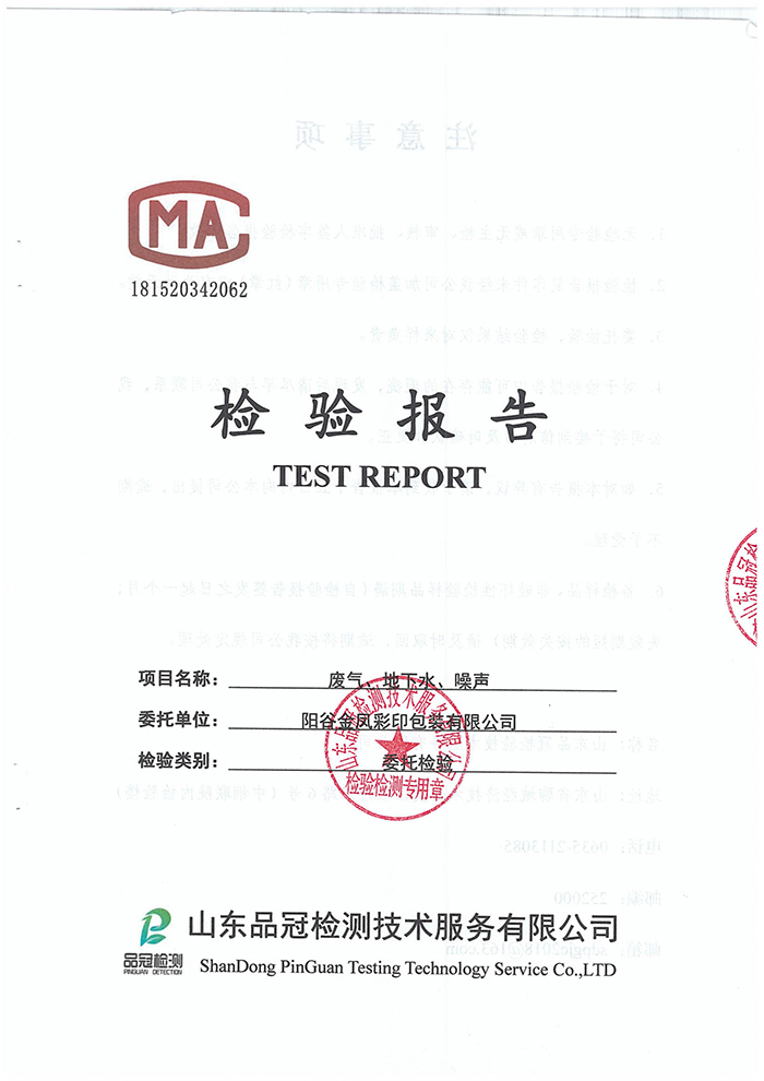金凤包装厂 废气地下水噪声监测报告